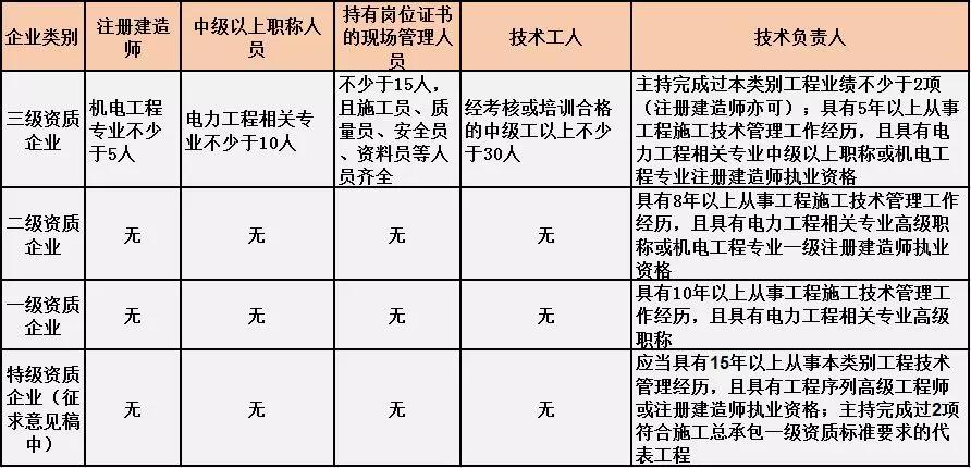 換句話說,并不是所有企業(yè)資質(zhì)都不要求有建造師等企業(yè)人員。施工總承包三級資質(zhì)企業(yè)對建造師等人員仍有要求,一級資質(zhì)、二級資質(zhì)企業(yè)保留技術(shù)負(fù)責(zé)人這一項要求,特級資質(zhì)另有規(guī)定。